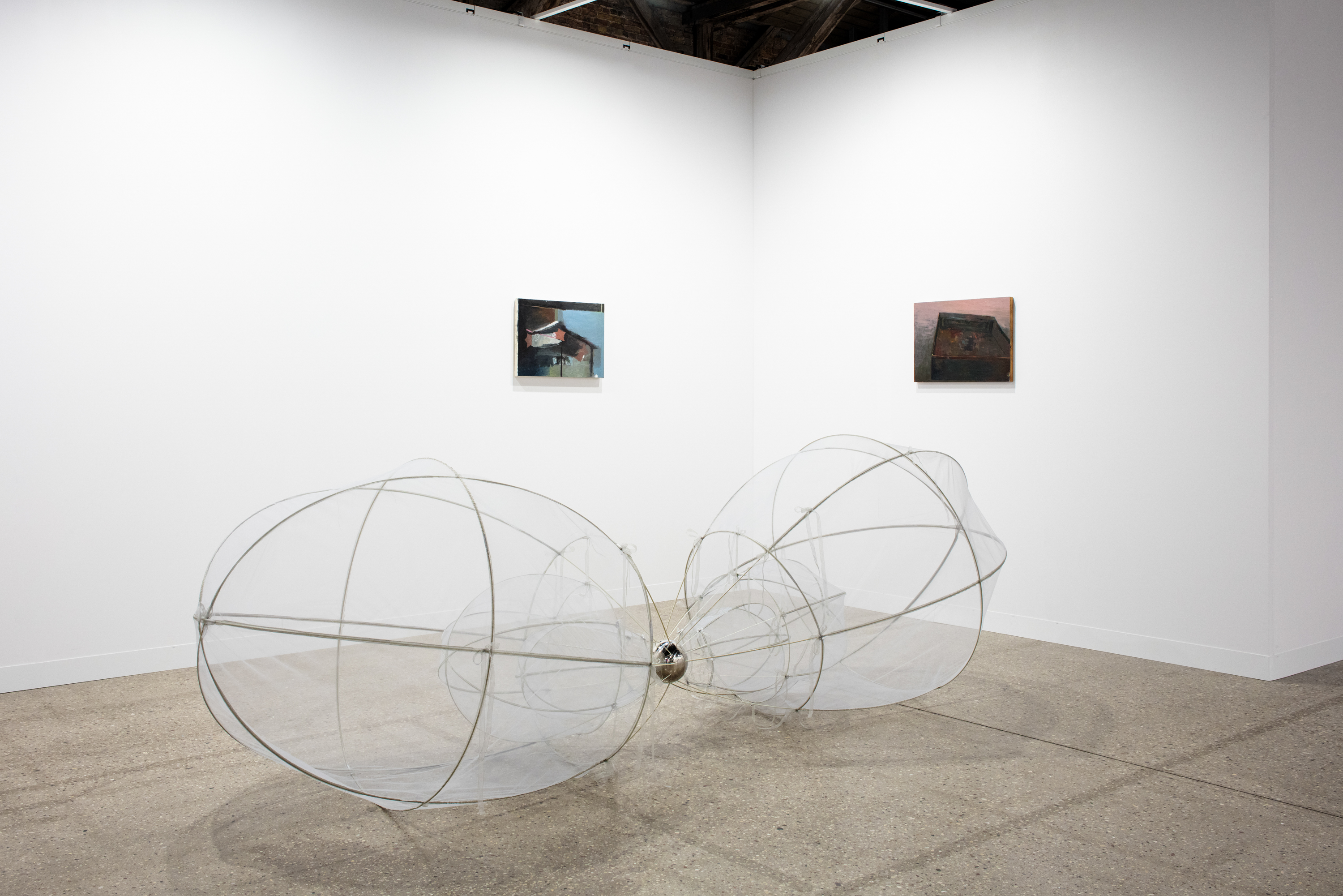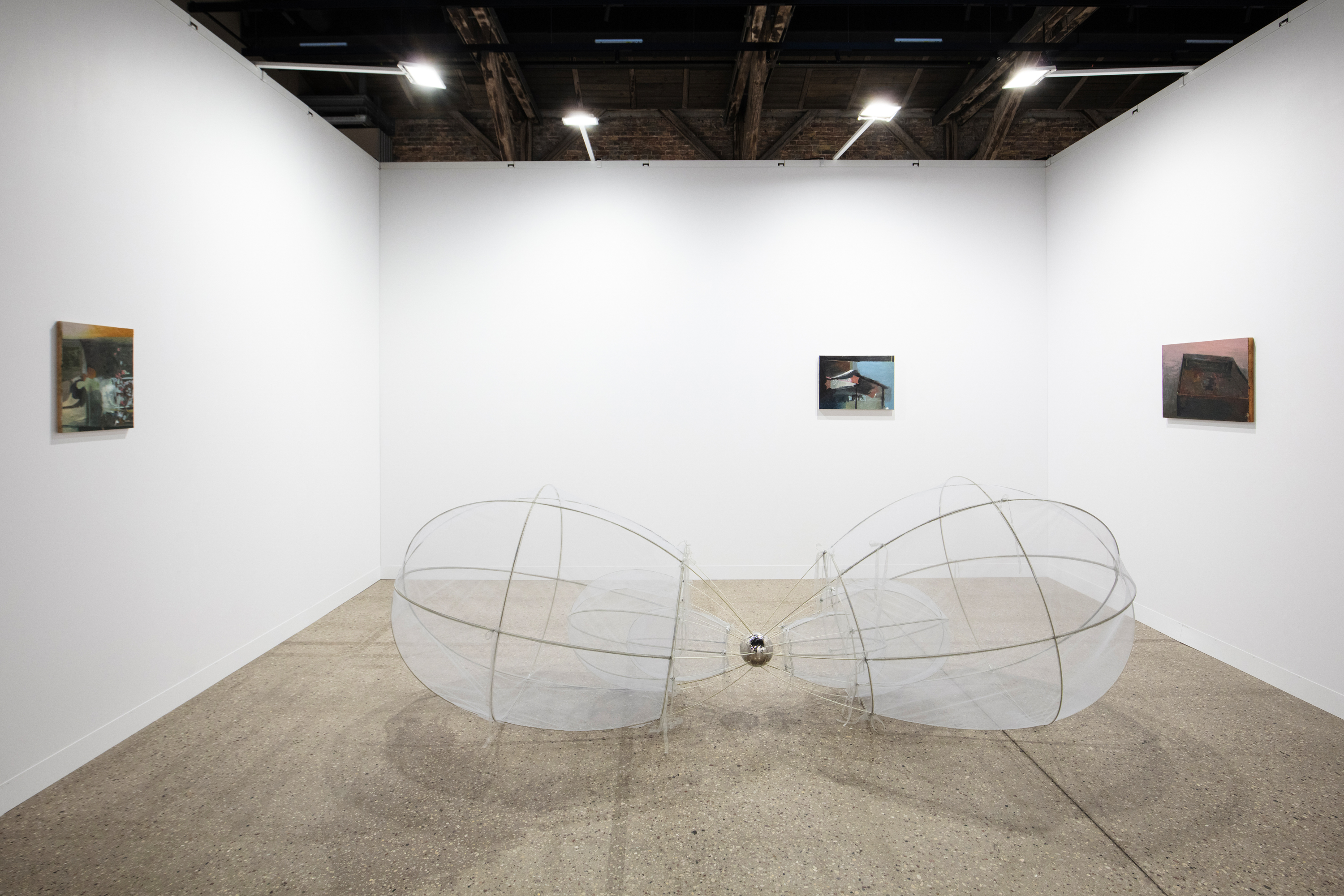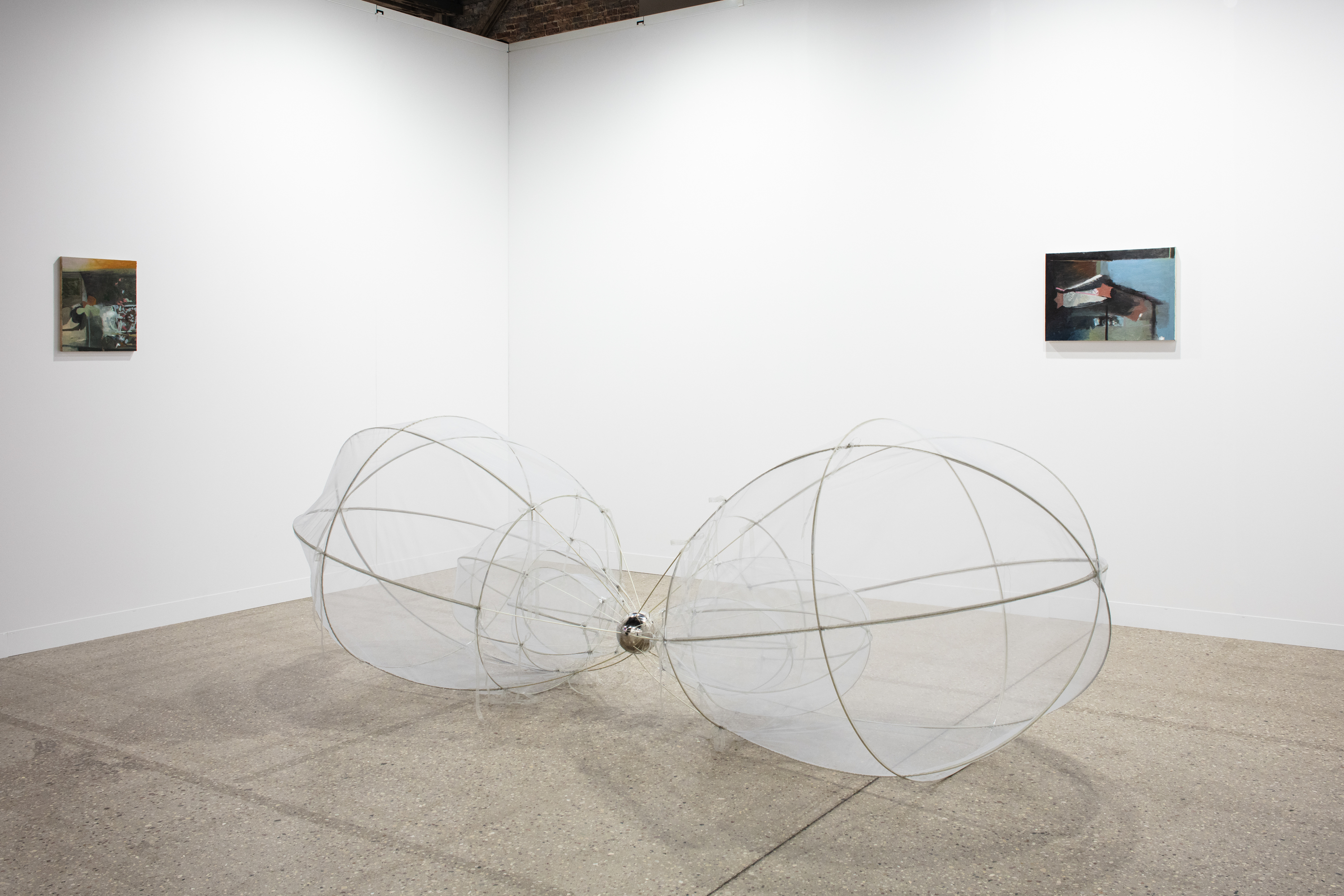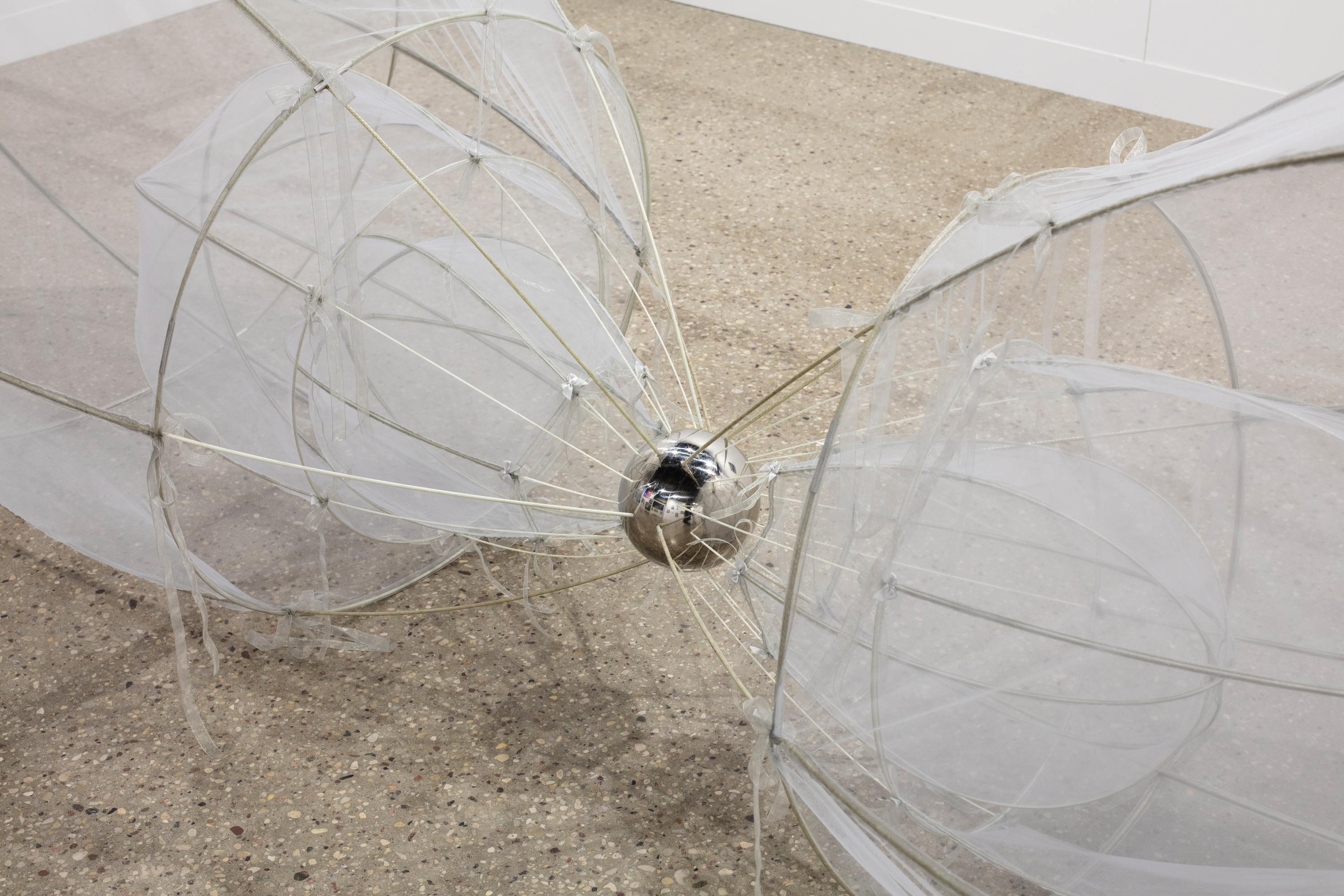 (detail), 2025. Fiberglass rods, tulle fabric, yarn, stainless steel, 100 x 300 cm